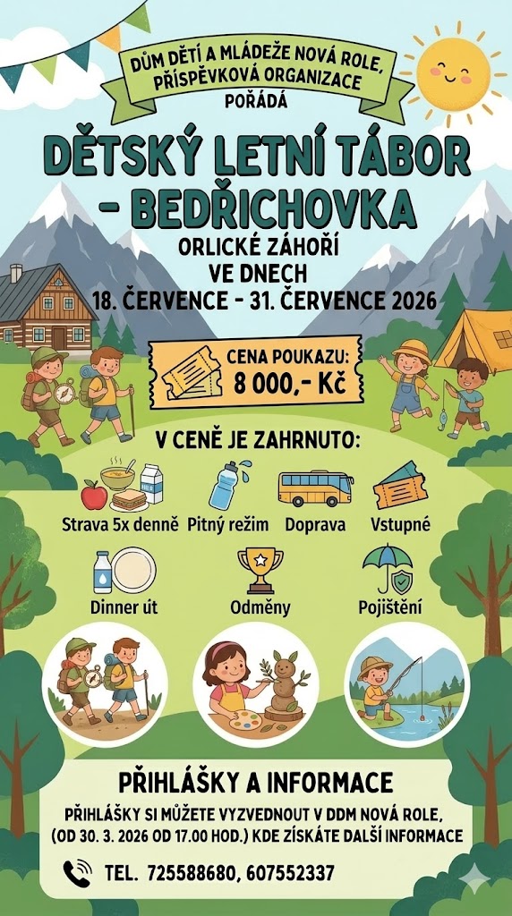 - 📝 Přihlášky: Od 30. 3. 2026 (17:00) v DDM Nová Role