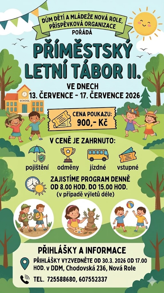 - 📝 Přihlášky: Od 30. 3. 2026 (17:00) v DDM Nová Role, Chodovská 236