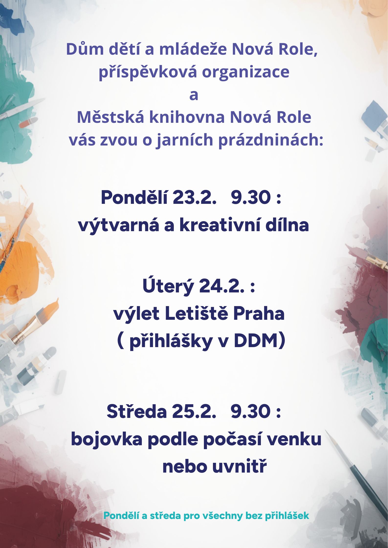Dům dětí a mládeže Nová Role, příspěvková organizace pořádá v úterý 24. února 2026 (jarní prázdniny)