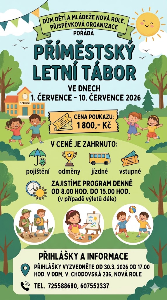- 📝 Přihlášky: Od 30. 3. 2026 (17:00) v DDM Nová Role, Chodovská 236